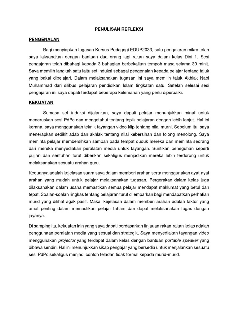 Contoh Penulisan Refleksi Yang Berkesan Pdf